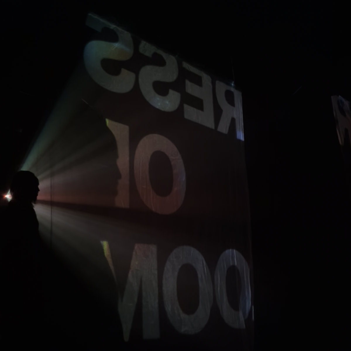 Résultat, sa sortie de résidence est un voyage au sein du vaisseaux SCARLETMOTIFF. Une installation audiovisuelle qui retrace son périple à travers des images clés et des paysages sonores récoltés au fil de ses explorations. Inspiré par l’esthétique des films de science-fiction des années 80 et 90, le dispositif invite à déambuler dans un labyrinthe de projections. Ces dernières compilent affiches et visuels glanés durant ses trois mois en Suisse, rendant hommage à sa riche culture visuelle. Au centre de la salle, une immense boule à facettes diffuse des éclats lumineux vers une constellation de miroirs répartis dans l’espace. Ce jeu de réflexions guide les visiteur·euse·x·s, les incitant à explorer physiquement et sensoriellement l’installation.