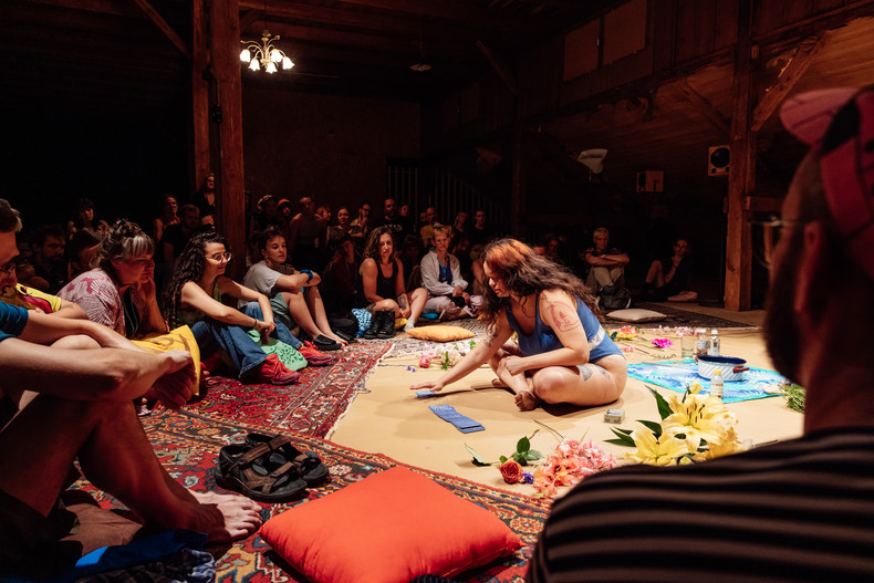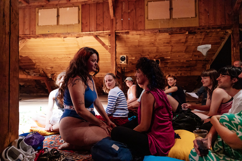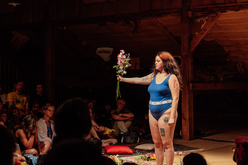 In her performance "Déguisée d’eau", the artist uses gestures and stories to recall her arrival in Europe four years ago and the various rituals she has had to perform to cultivate her bond with water. To water her inner earth, to warm herself, to enjoy and to cry.
